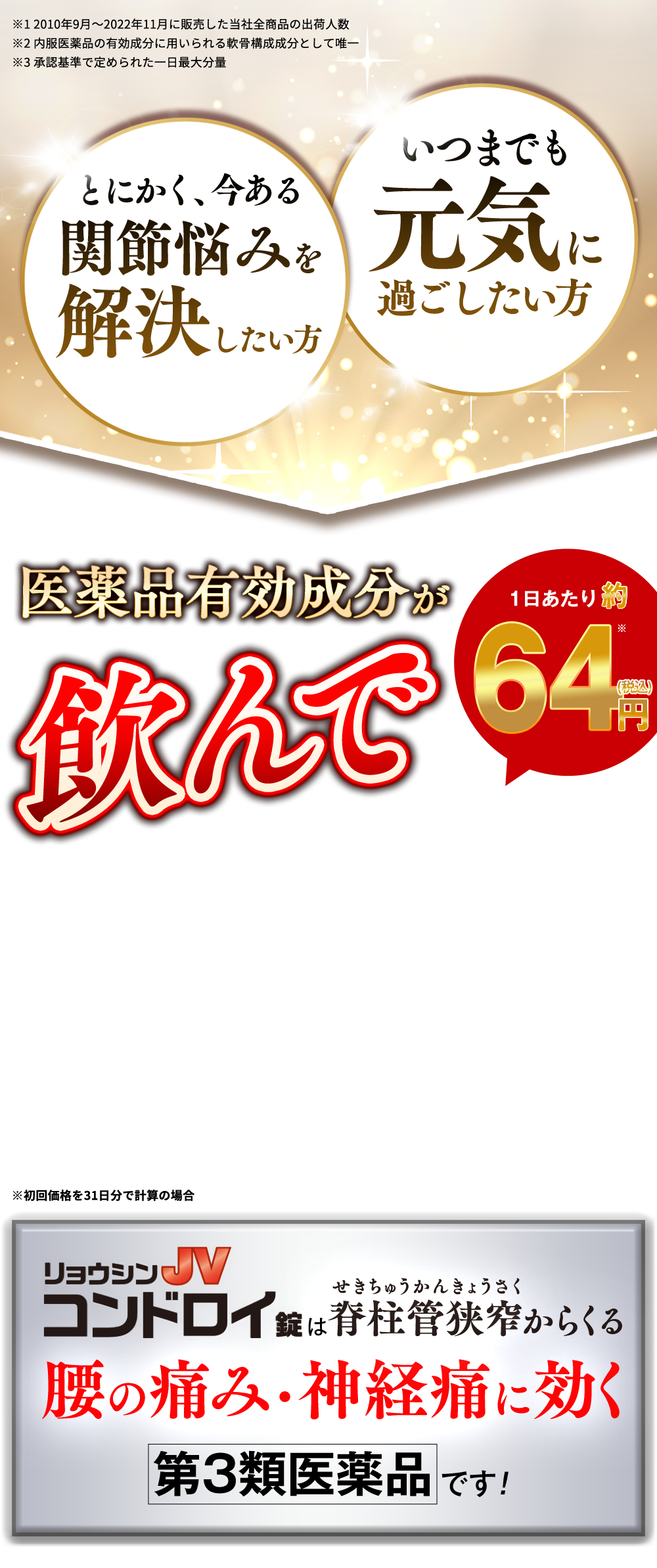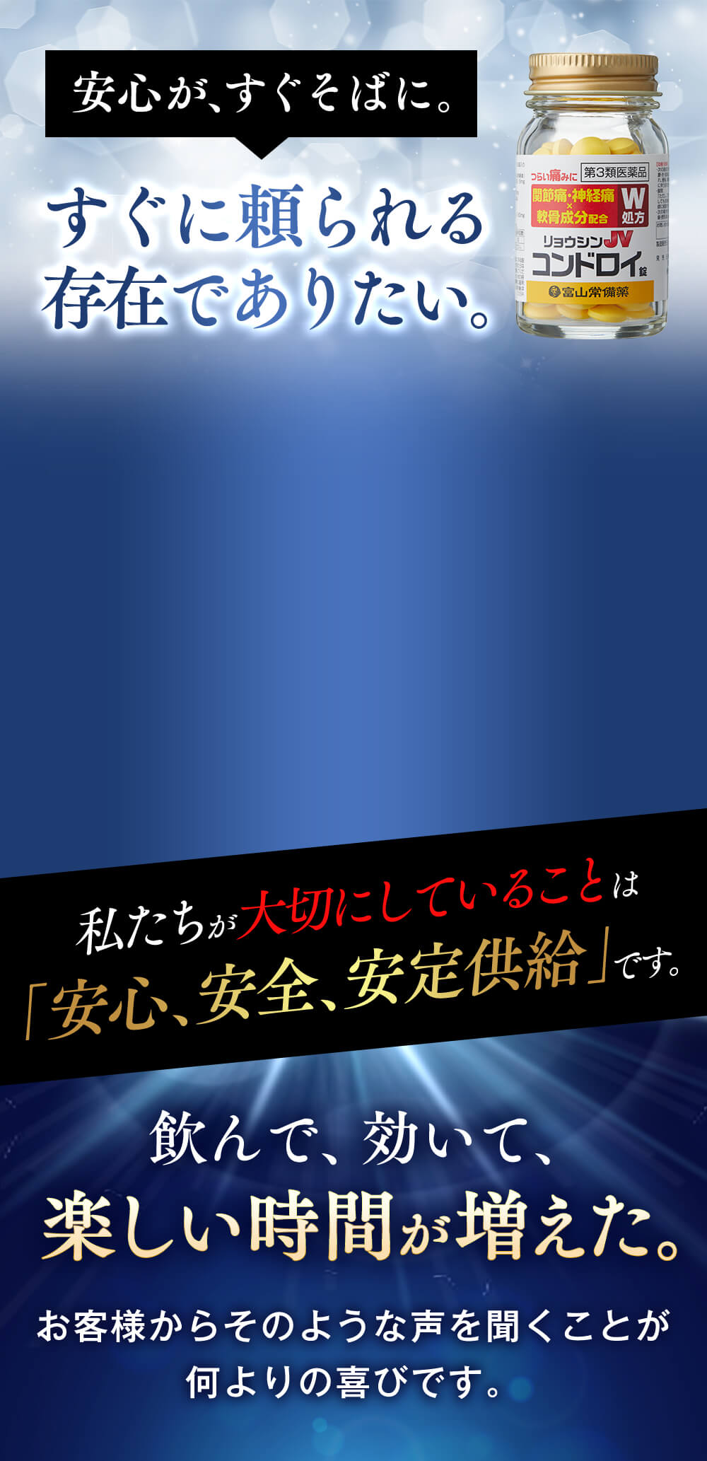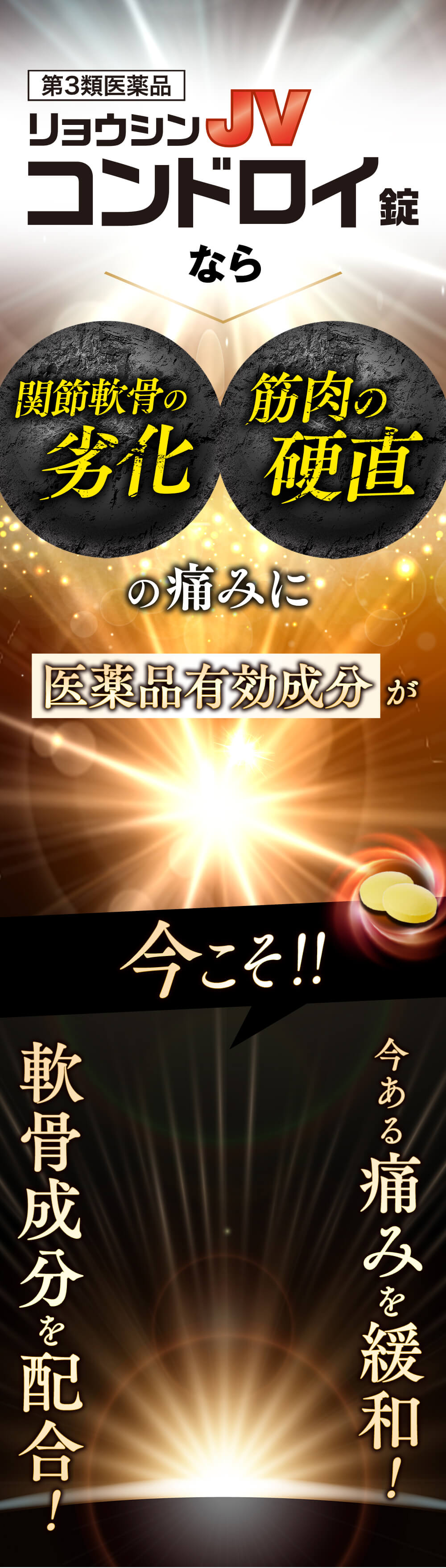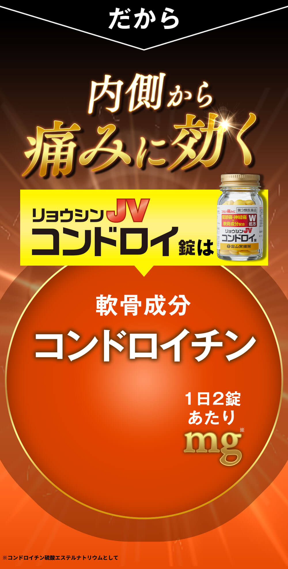 「リョウシンJVコンドロイ錠」は、体の中からじっくり作用するお薬です。