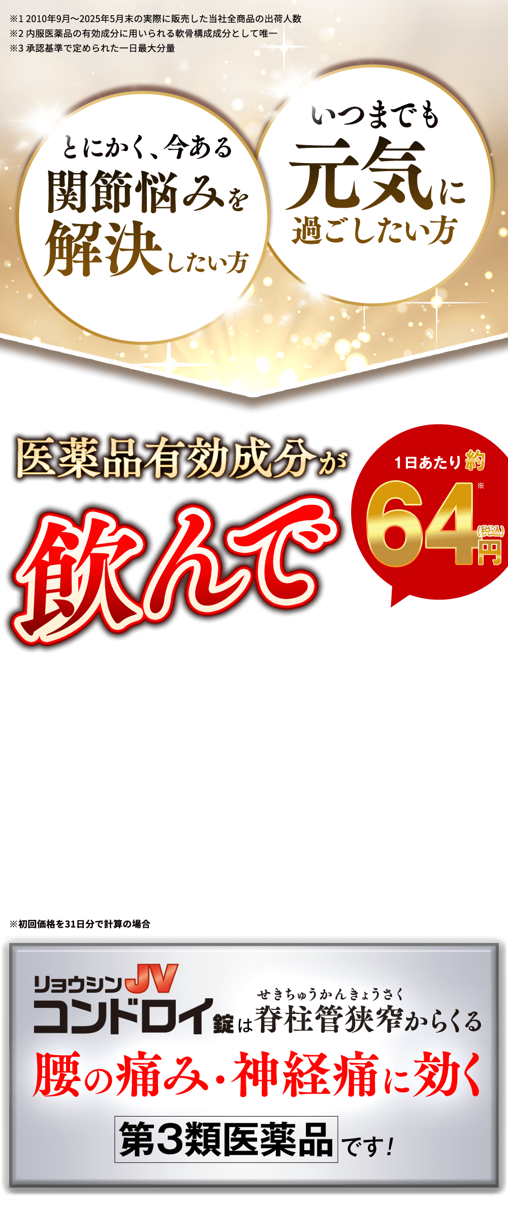 「リョウシンJVコンドロイ錠」は、体の中からじっくり作用するお薬です。