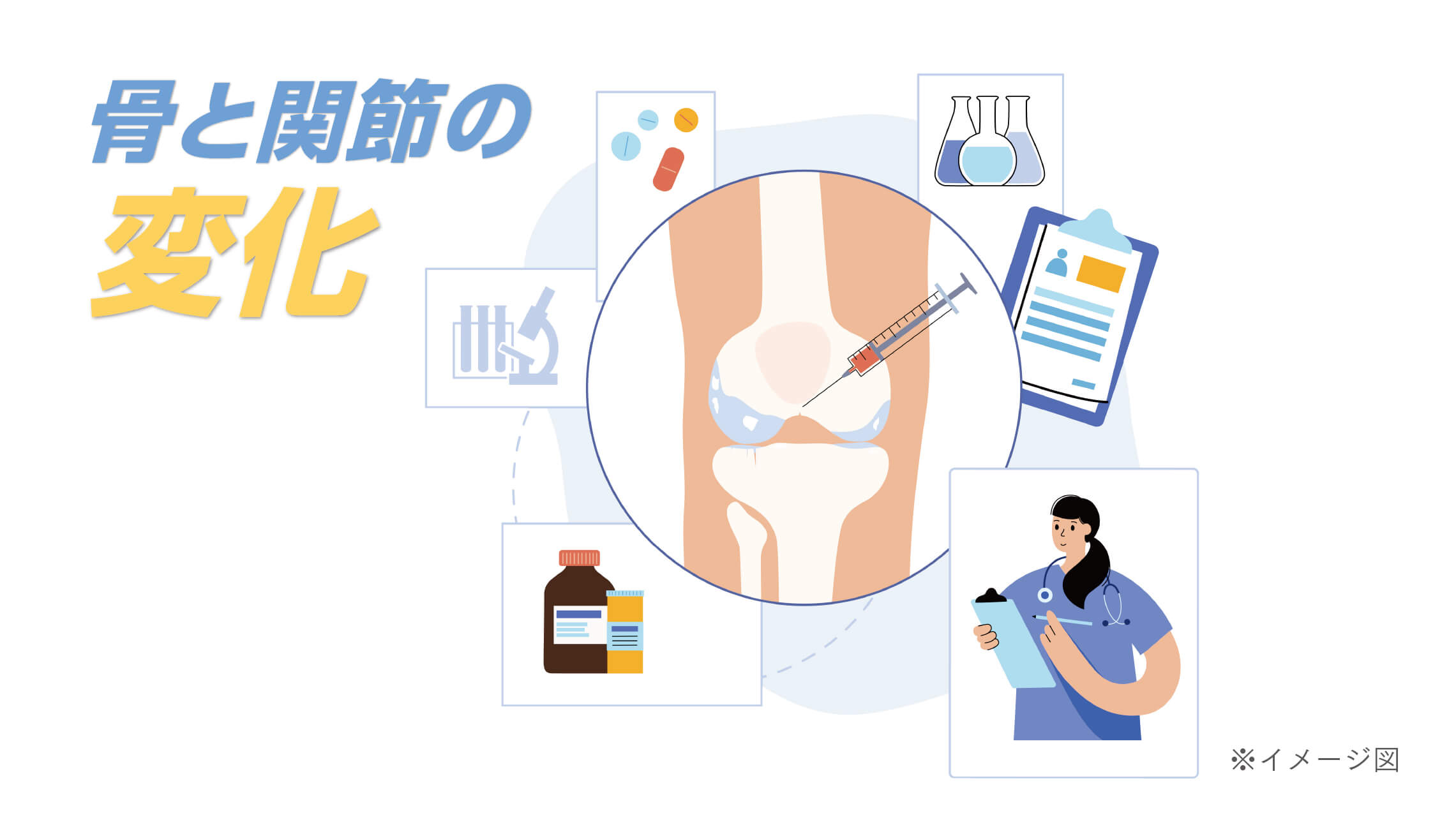 骨粗鬆症や変形性関節症は、進行するまで明確な症状が現れにくく、未病の段階で介入することで、将来的な骨折や慢性痛を予防できる可能性があります。骨粗鬆症は骨密度の低下によって骨がもろくなる病態で、特に閉経後女性や高齢者で顕著です。