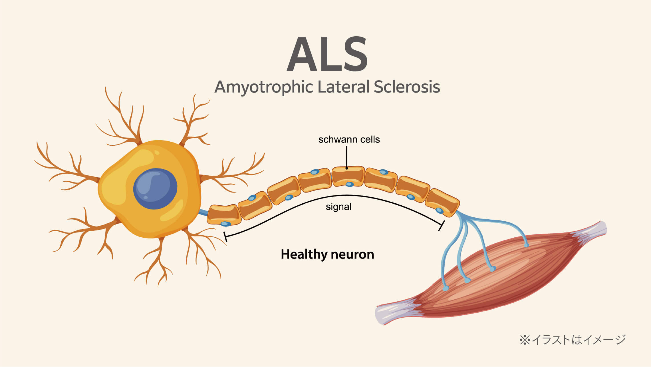 私たちの体の中には、脳から筋肉へ信号を届ける“神経の糸”があります。ALS(筋萎縮性側索硬化症)は、その糸が少しずつほどけてしまい、動きが徐々に失われていく病気です。運動に関わる糸が選択的に障害され、筋力低下・嚥下障害・呼吸不全へと進行する疾患です。完治はまだ難しいですが、近年、進行を緩やかにする薬が相次いで登場し、未来へのちいさな希望を灯しています。