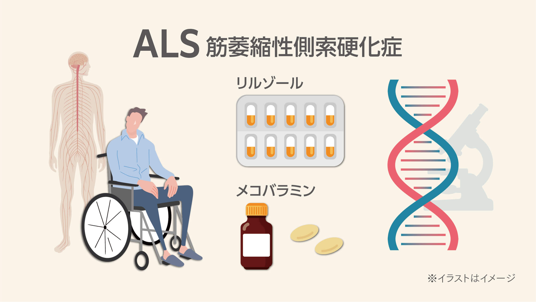 昔からあるALS治療薬で、神経の過剰な興奮を抑えるリルゾール、活性酸素を減らすエダラボン。どちらも病気の進行をわずかに遅らせるものです。