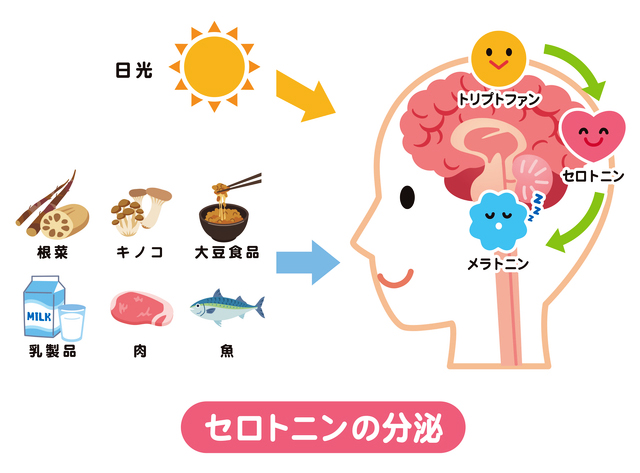 カギを握るのは、精神の安定を保つため脳に分泌される「セロトニン」。「幸せホルモン」とも呼ばれるこのホルモンには、満腹感を感じさせ食欲を抑える作用があります。