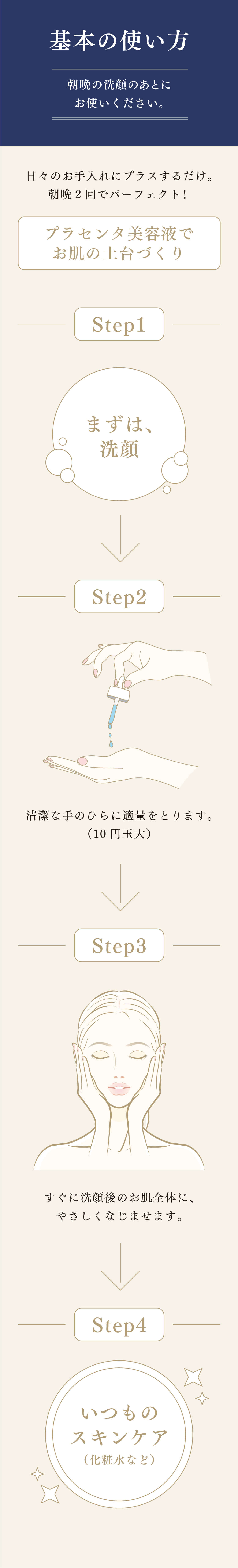洗顔後、適量(1回分使用目安10円玉大:約0.5mL)を手に取り、お顔全体になじませて下さい。
